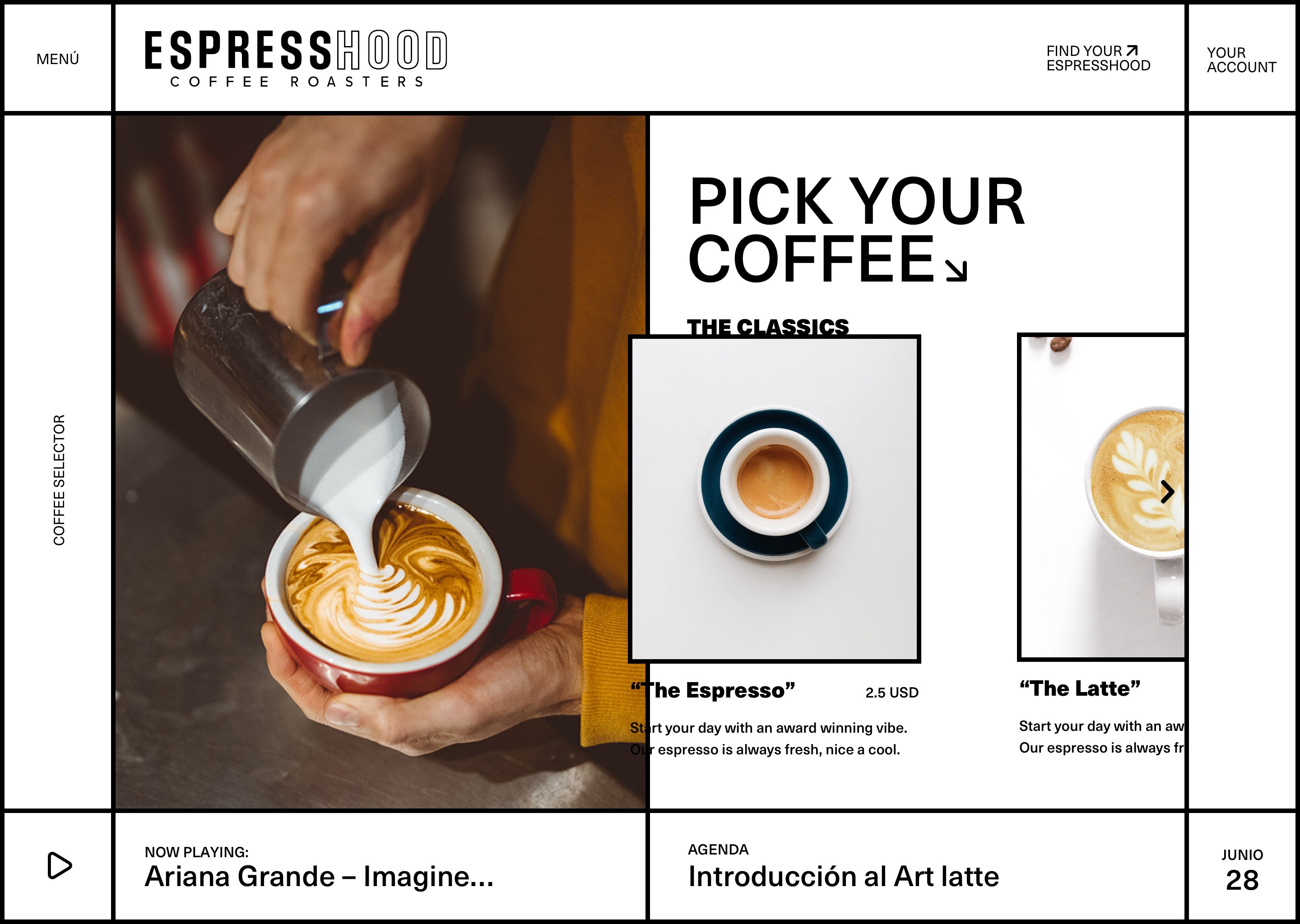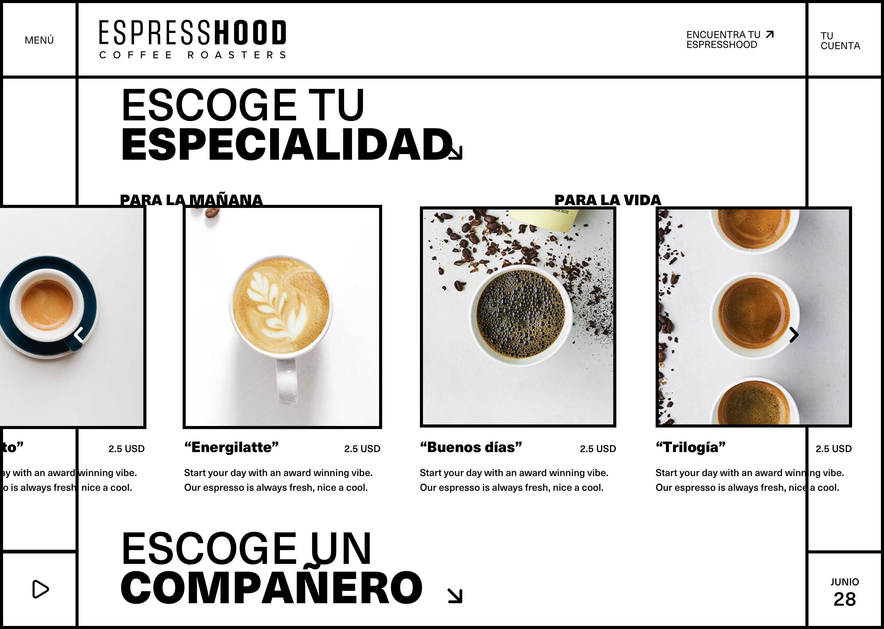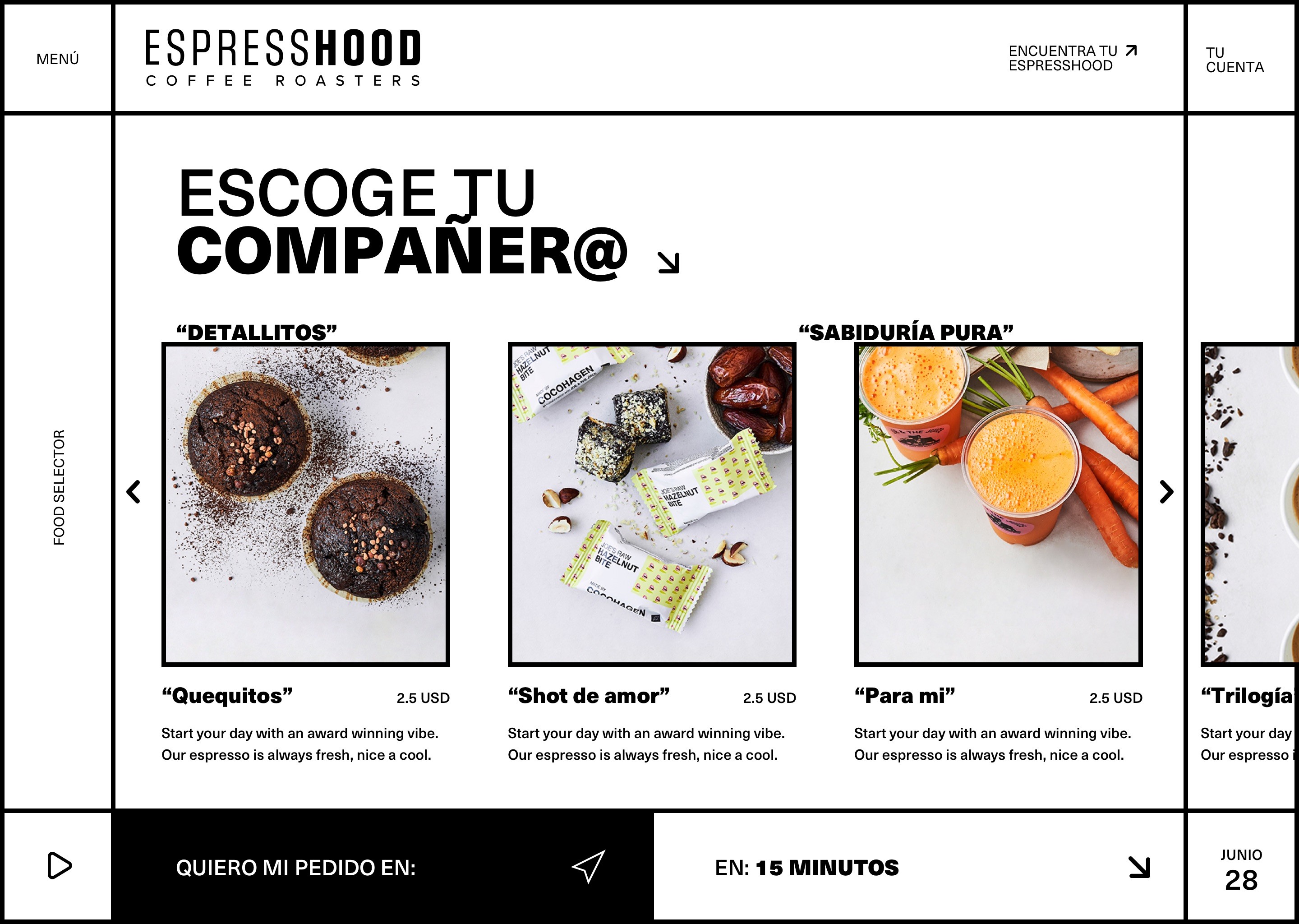 Nuestro análisis nos mostró que el cliente potencial de EspressHood, consideraban que una cafetería brindaba solo servicio rápido y poco comprometido. EspressHood detectó su ventaja competitiva en combinar lo urbano con lo consciente, asumiendo que eficiencia, ética y calidad pueden coexistir. La marca expuso su cualidad única al imaginarse como un movimiento cafetero sustentado por productores, baristas y clientes que comparten principios de justicia y pasión.