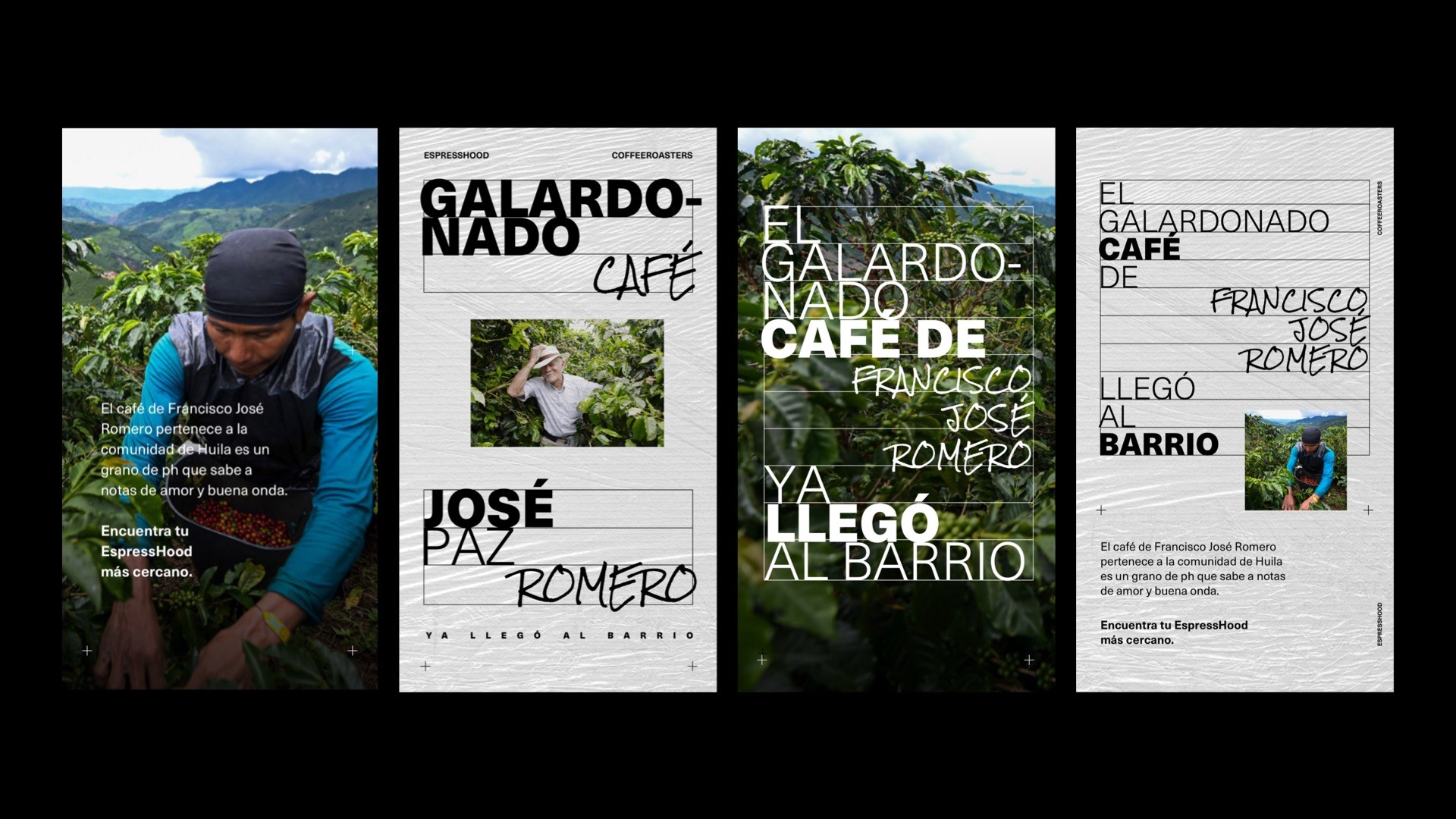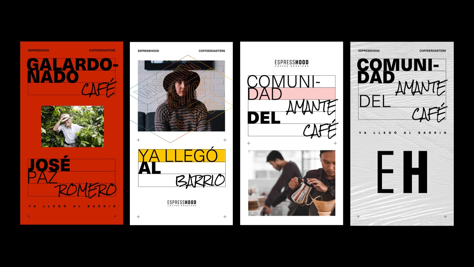 Definimos a la marca como retador que transforma la industria mediante un círculo virtuoso alrededor del café. El nombre EspressHood une espresso y neighborhood para simbolizar café de especialidad con espíritu de barrio global. La identidad verbal adoptó un tono directo, valiente y empático, coherente con una personalidad tipo 8 del eneagrama: energía poderosa, con corazón.