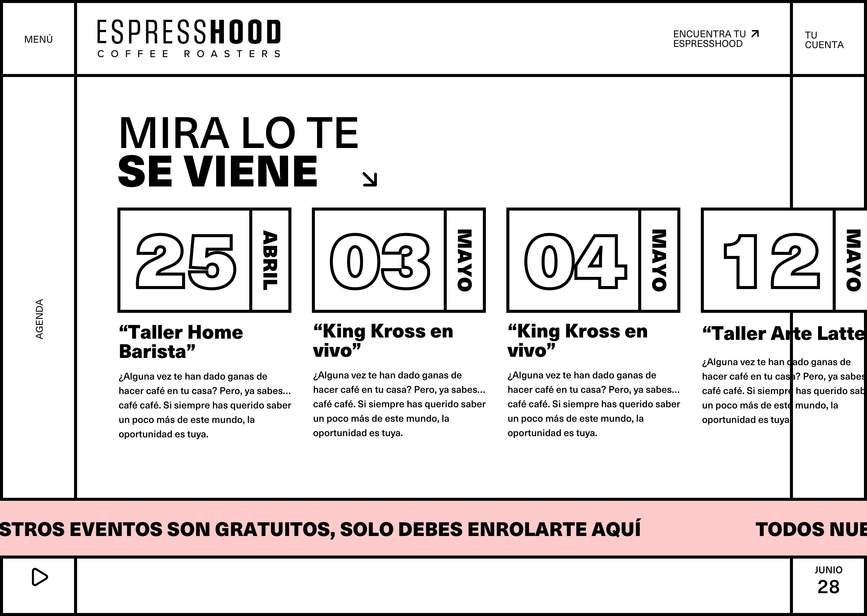 EspressHood nació en pleno auge de la cultura cafetera chilena con la misión de elevar el estándar y la experiencia del café mediante economía circular y transparente. En un mercado saturado de cadenas que ofrecían un servicio rígido y cafés de calidad ambigua, la marca visualizó una propuesta premium que celebrara la conexión comunitaria y la consciencia social. Su visión apuntó a crear el punto de encuentro preferido para amantes del café y agentes de cambio.