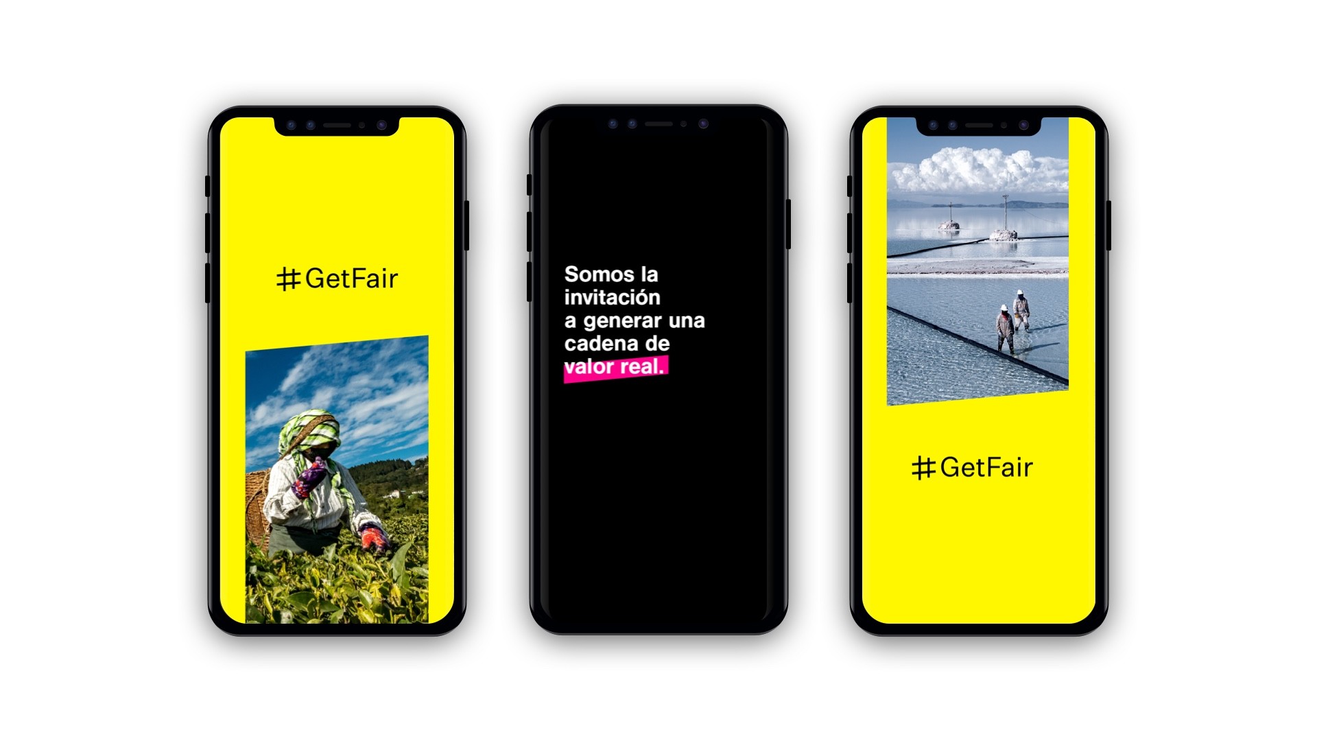 La marca se definió como un sello vivo de participación ciudadana. GetFair dejó de presentarse como auditor externo para actuar como plataforma abierta que invita a “hacerse más justos” en comunidad. El nombre adoptó tono de consigna; la voz se orientó a facilitar acciones concretas: “escanea, conoce, comparte”. Cada contacto con la marca debía evidenciar sencillez, cercanía y poder de acción.