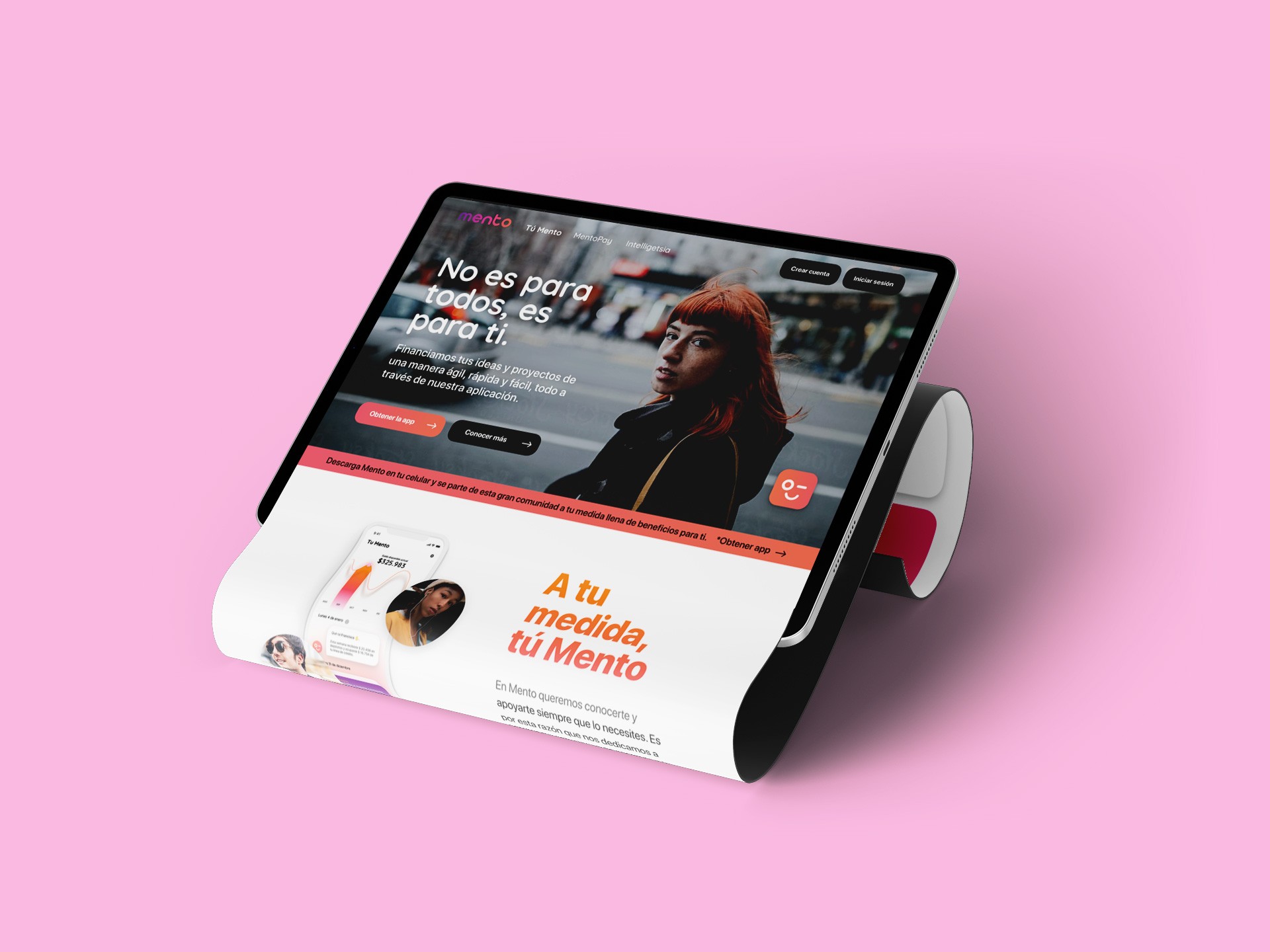 Las últimas fases del proceso implicaron la integración de la identidad final en un landing y en los mockups de la app. Diseñamos una secuencia de ilustraciones y animaciones para la pantalla de carga, reforzando la narrativa de que Mento es flexible y está presente cuando lo requieras. También construimos un blog llamado Intelligentsia, como un espacio de educación financiera que refuerza el pilar de la marca: entregar conocimiento tangible y valioso a sus usuarios. Finalmente, consolidamos un brandbook que recoge todos los lineamientos y ayuda a escalar la marca a futuros desarrollos.