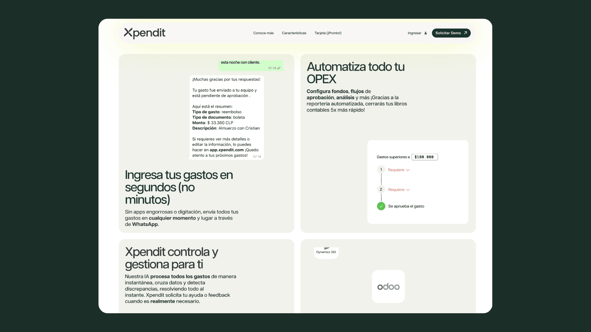 Sin embargo, al momento de desarrollar su presencia digital, Xpendit enfrentaba un desafío crítico. Su plataforma funcionaba de manera excepcional, pero el sitio web no lograba comunicar la verdadera dimensión de su propuesta de valor. En un mercado saturado de soluciones fintech, necesitaban diferenciarse claramente de competidores que prometían funcionalidades similares. La pregunta era: ¿cómo hacer que la automatización contable se sintiera tan natural como una conversación cotidiana?