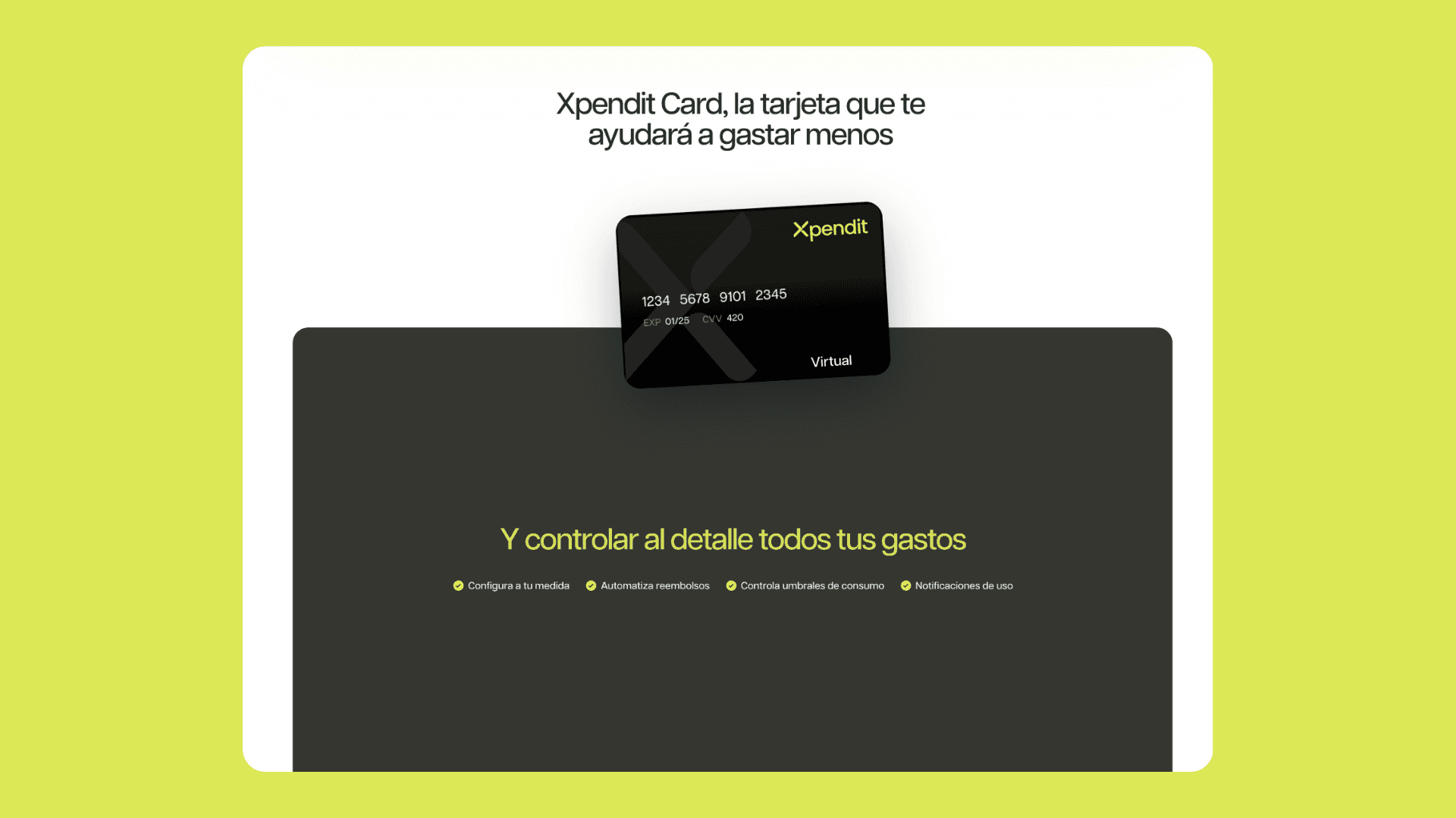 La arquitectura visual combina el dashboard real de la plataforma con elementos flotantes que sugieren fluidez y movimiento. Esta composición elimina la percepción de software rígido, posicionando a Xpendit como una extensión natural del flujo de trabajo empresarial.